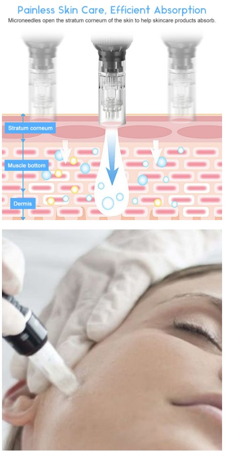 Πρόκειται για μια πένα(στυλό) που στο άκρο της έχει προσαρτημένη ειδική κεφαλή με ακίδες τιτανίου. Η κεφαλή αυτή διαπερνά το δέρμα τραυματίζοντας ελεγχόμενα και δημιουργεί μικρονυγμούς. Οι νυγμοί (μικρές οπές) αποτελούν την πύλη εισόδου , ώστε να διεισδύσει σε δεύτερο χρόνο το μεσοθεραπευτικό cocktail βαθιά μέσα στο δέρμα. Το βάθος στο οποίο φτάνουν οι ακίδες, είναι ρυθμιζόμενο (0,25mm-2,5mm) ώστε να προσαρμόζεται ανάλογα με την υπό θεραπεία περιοχή (μάτια, πρόσωπο, ντεκολτέ, σώμα). Λόγω της κάθετης διείσδυσης των ακίδων, η αποθεραπεία είναι πολύ σύντομη και η θεραπεία εντελώς ανώδυνη.
